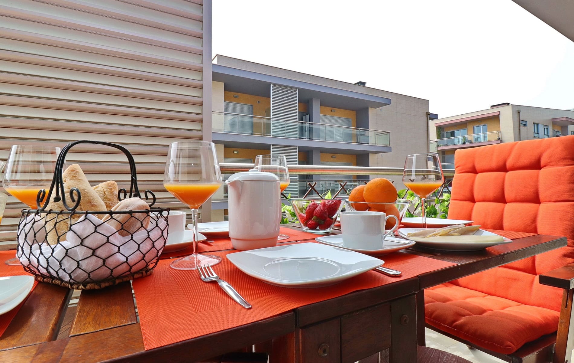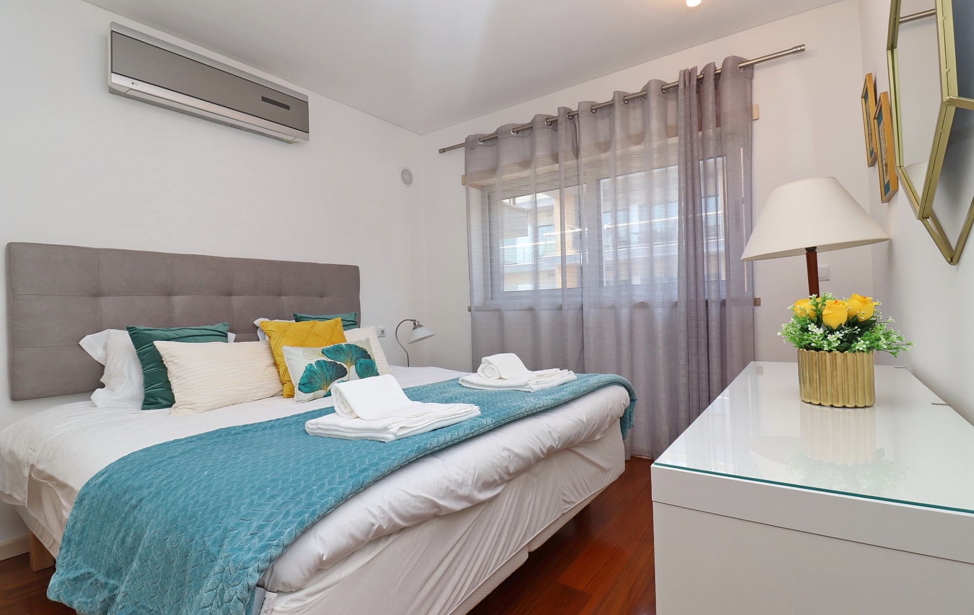 Spacious apartment with plenty of natural light. Contemporary decoration and cozy that makes you feel at your own home. Spacious balcony decorated with outdoor furniture. Totally equipped kitchen. Pleasant exterior area with a garden, heated swimming pool and playground.  Located 1 km from the beach, 500 meters from the village center, pharmacy, marketplace and main shops and 250m from the supermarket. Smoking is not allowed. No pets allowed. The quiet time is from 22:00 till 8:00.